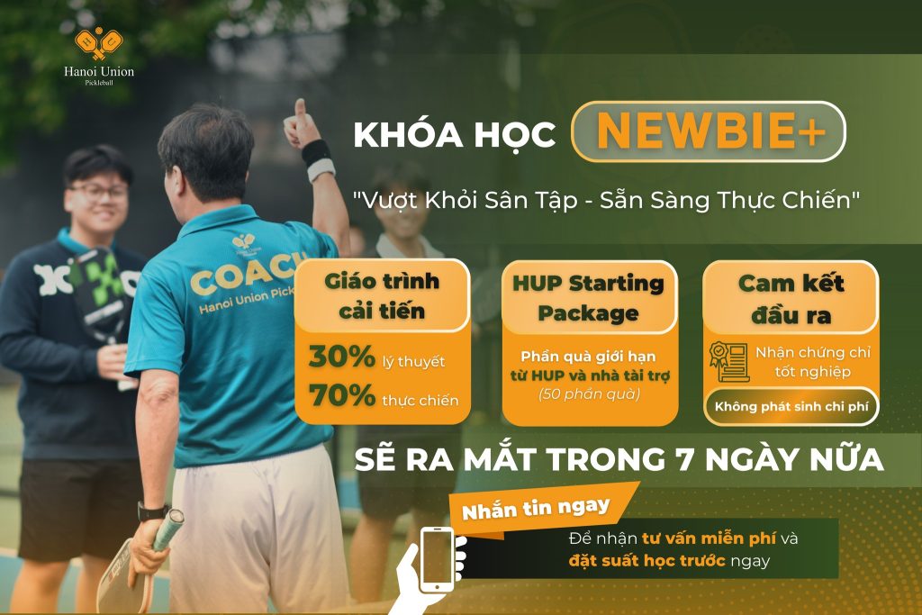 Lấy tầm nhìn trở thành “Đơn vị đào tạo Pickleball dẫn đầu xu hướng”, Hanoi Union Pickleball mang đến phương pháp giảng dạy hiện đại, khoa học, liên tục cập nhật những kỹ thuật mới nhất từ PPA (Professional Pickleball Association). Hệ thống khóa học tại HUP được thiết kế chuyên biệt cho mọi trình độ, bao gồm: Khóa học Newbie, Newbie+ và Pickleball Pro.