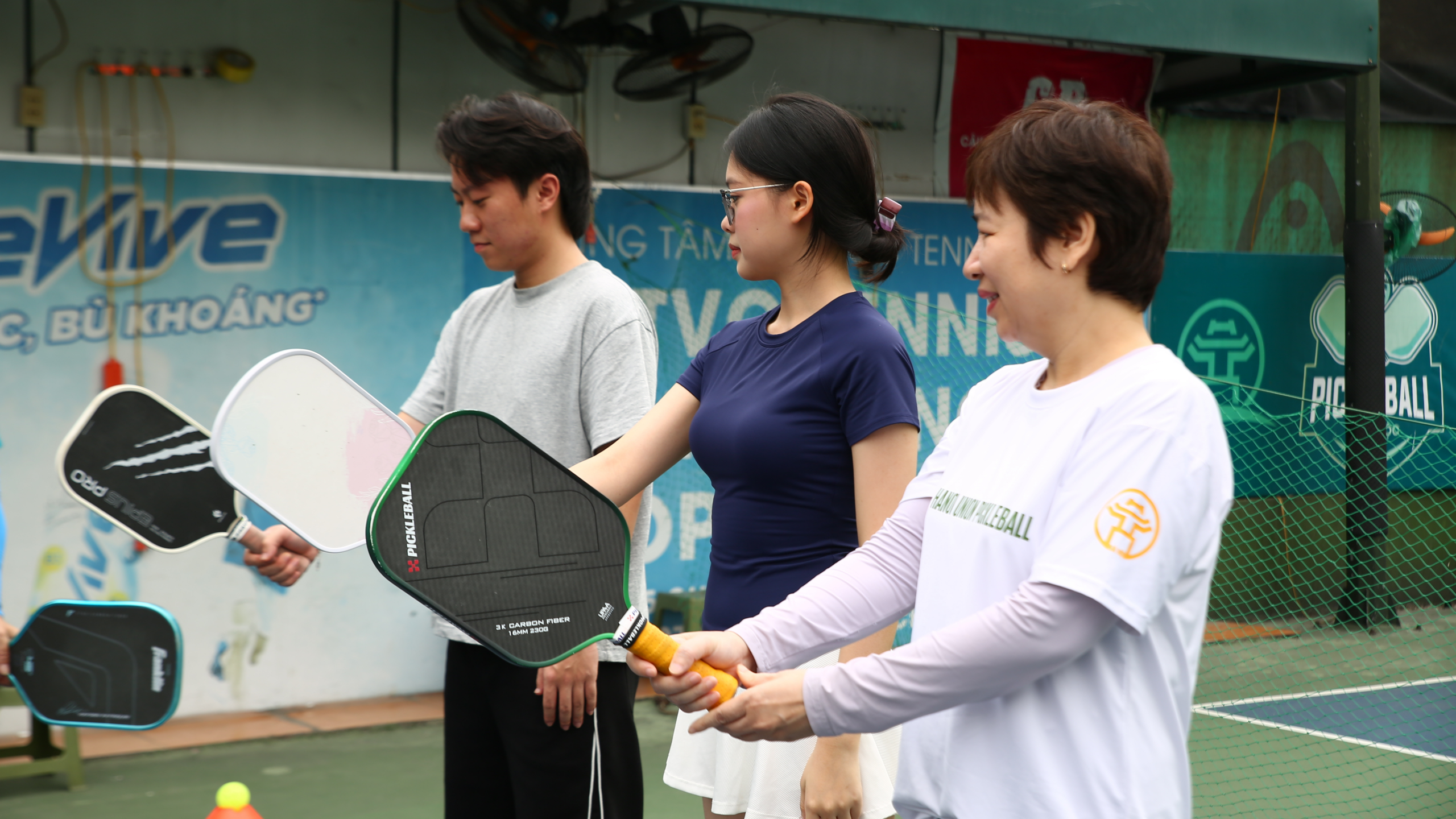 Vợt có kích thước nhỏ hơn vợt tennis và được làm từ composite hoặc graphite. Người mới nên chọn loại vợt nhẹ để dễ kiểm soát và làm quen. - Bóng pickleball